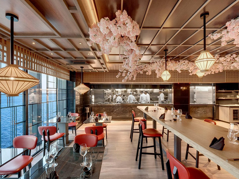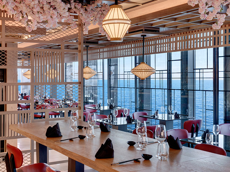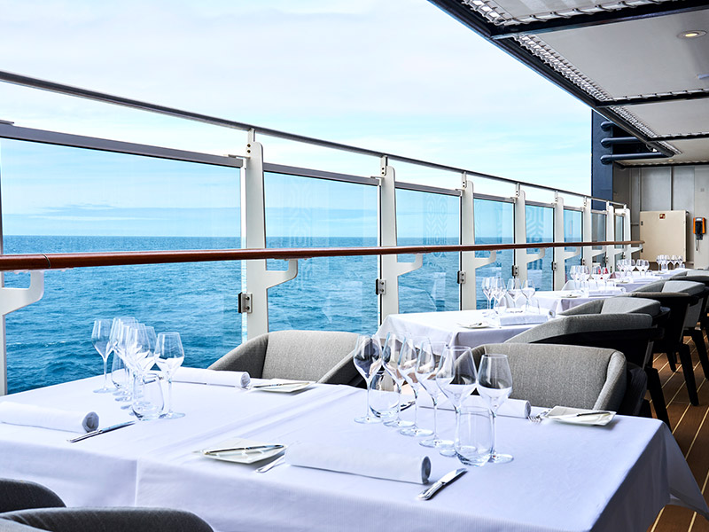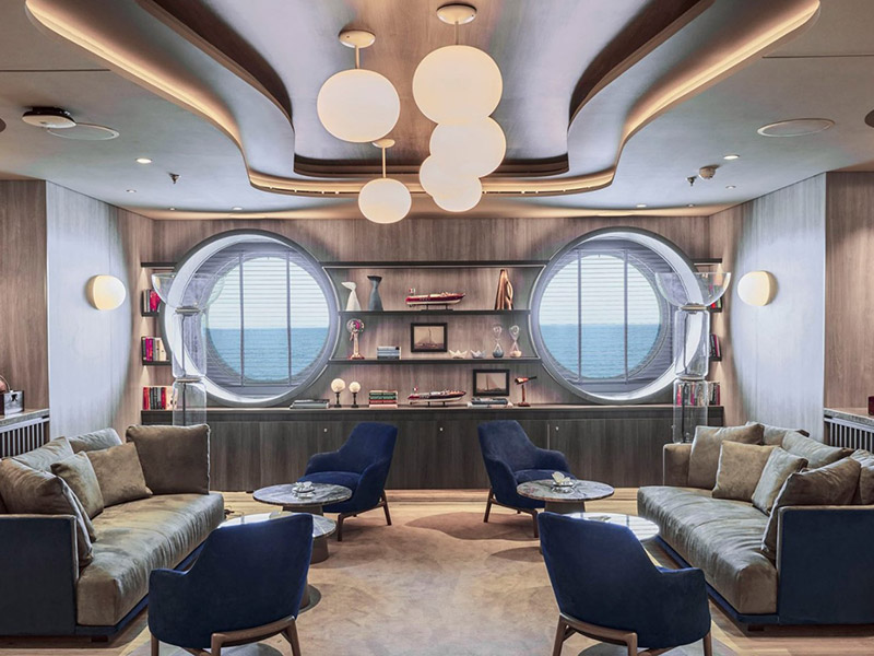 Im Schiff ist die Atmosphäre elegant. Drei Steinway Flügel sind an Bord, zwölf Lounges und Bars. Am späten Nachmittag inspirieren starke Persönlichkeiten mit Geschichten aus ihrem Leben. Finden Sie Ihren Lieblingsplatz, nippen Sie an einem eiskalten Negroni und lassen Sie das Geschehen auf sich wirken, und wählen Sie jederzeit, ob Sie in einem der sechs Restaurants oder en- Suite speisen möchten.