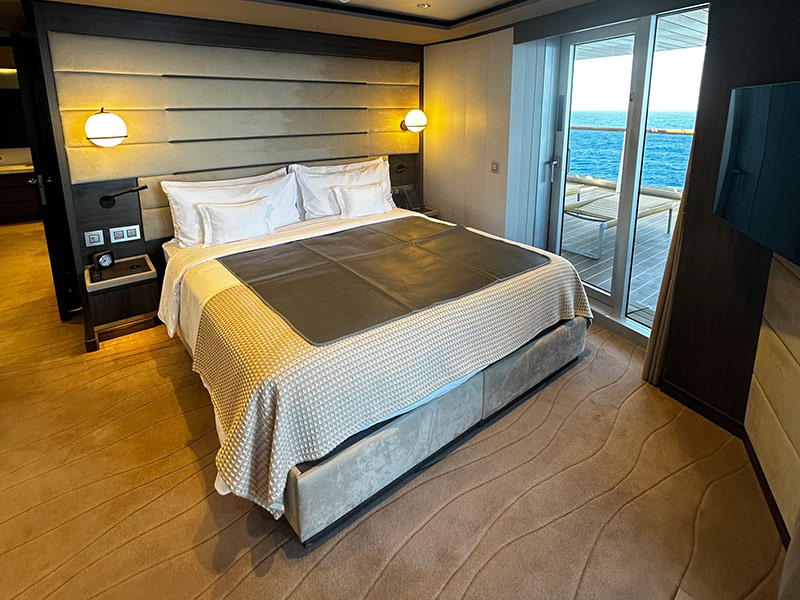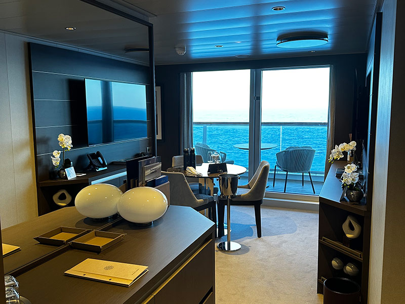 Die 32 qm großen Ocean Grand Terrace Suites liegen auf den Decks 6 und 7 und verfügen über eine 11 qm große private Terrasse mit Esstisch und Loungebett, von dem aus Sie ganz entspannt den Blick über das Meer schweifen lassen können.